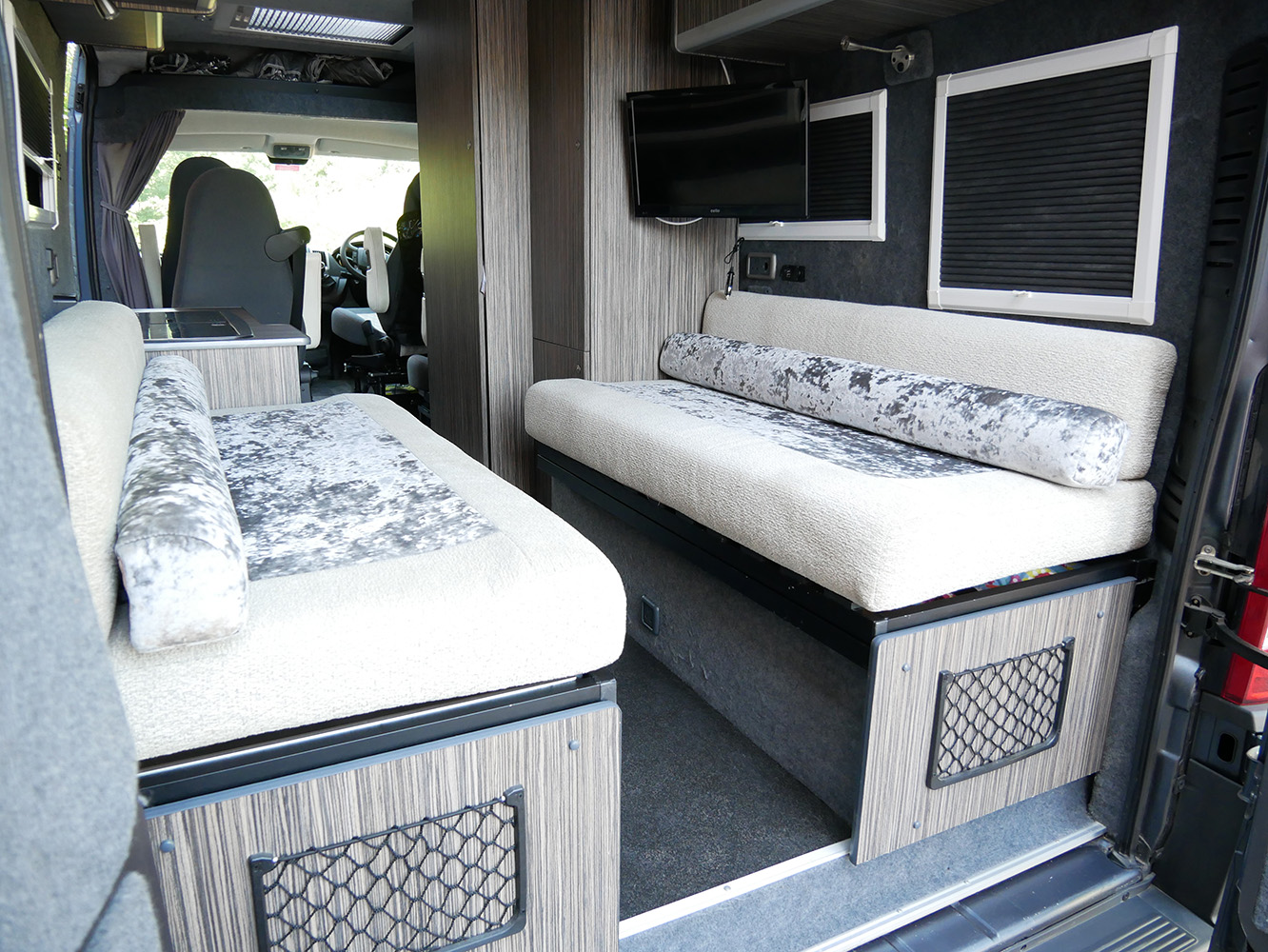 This is thanks to the bountiful space of the long wheelbase. There's lots to play around with! This is thanks to the bountiful space of the long wheelbase... We have developed unique designs that work in the fiat ducato, citroen relay and the peugeot boxer.